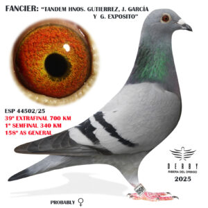 19ª llegada en el día, paloma también con un equilibrio perfecto, muy ligera, incansable (llegó sin apenas acusar el esfuerzo) y sobre todo con unos antecesores llenos de extraordinarios resultados en los fondos y grandes fondos más duro (100% marítimos, sobre el mar). SU madre fue 3ª INSULAR (Las Palmas) en una suelta de 913 km!!!!